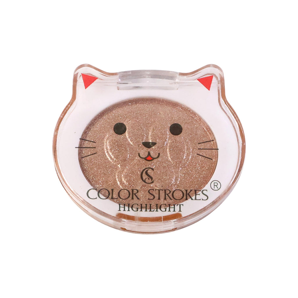 This Color Strokes Highlighter is a radiant, ultra-glow illuminating powder designed to add a beautiful light-reflecting shimmer to your makeup look. Packed in an adorable cat-shaped compact, this highlighter instantly brightens your face with a soft, luminous sheen that enhances your natural features. The finely milled shimmer blends effortlessly into the skin, providing a smooth, silky finish without emphasizing texture. Whether you want a subtle daytime glow or a bold, glamorous shine for parties and events, this highlighter builds beautifully to match your desired intensity. Lightweight, long-lasting and easy to carry, it is perfect for glowing up your cheekbones, bridge of the nose, brow bone and collarbones. A must-have for every makeup lover who enjoys playful packaging and stunning radiance.