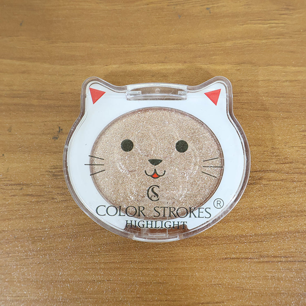 Premium Color Strokes Shimmer Highlighter – Ultra-Glowing, Soft-Blend Illuminating Powder with Radiant Finish, Lightweight Texture & Cute Cat-Themed Compact for Cheekbones, Nose, Brow Bone & Party-Ready Makeup Looks (1 Pc)