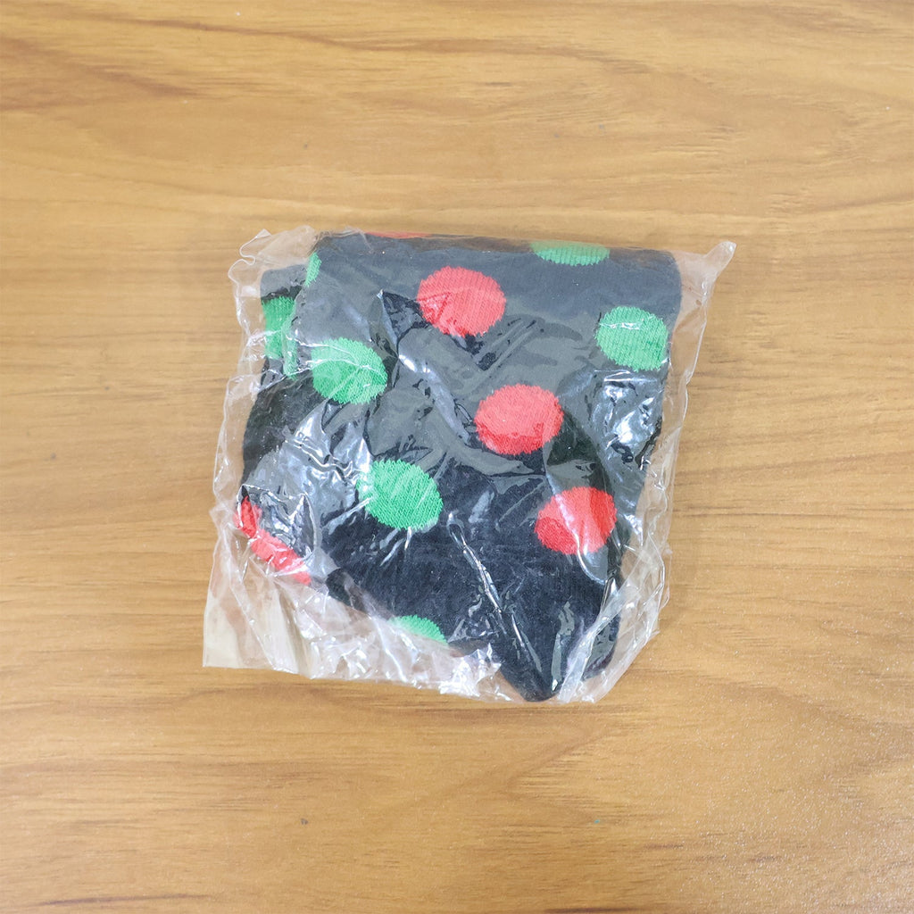 Add some fun and style to your wardrobe with these polka dot socks! Designed with a black base and vibrant red and green dots, they bring a playful twist to your casual outfits. Made from a soft and breathable cotton blend, these socks provide comfort and flexibility for all-day wear. Whether you're lounging at home, running errands, or looking for a fun touch to your daily attire, these socks offer the perfect balance of style and comfort.